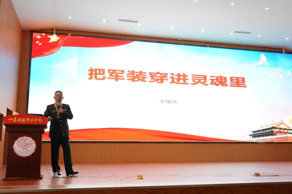 王曙光以《把军装穿进灵魂里》为题,慷慨激昂讲述了他的人生选择及参战经历,全场师生为之动容。从内蒙古呼伦贝尔到云南麻栗坡,从入学到参军,军装永远穿在身上,军魂一直走在路上,使命永远扛在肩上。他在1987年11月的作战行动中勇敢顽强,不慎触雷炸断双脚,荣立一等战功。他身残志坚,以坚韧不拔的毅力,努力克服伤残带来的不便,坚持工作,发奋苦读。他用自己的亲身经历,中外战争案例以及战斗英雄的故事,让同学们进一步理解了“哪有什么岁月静好,只是有人为你负重前行”这句话的深刻含义。他勉励同学们要发扬不怕艰险、勇于拼搏的精神,立志成长成才,努力成为担当民族复兴大任的时代新人。