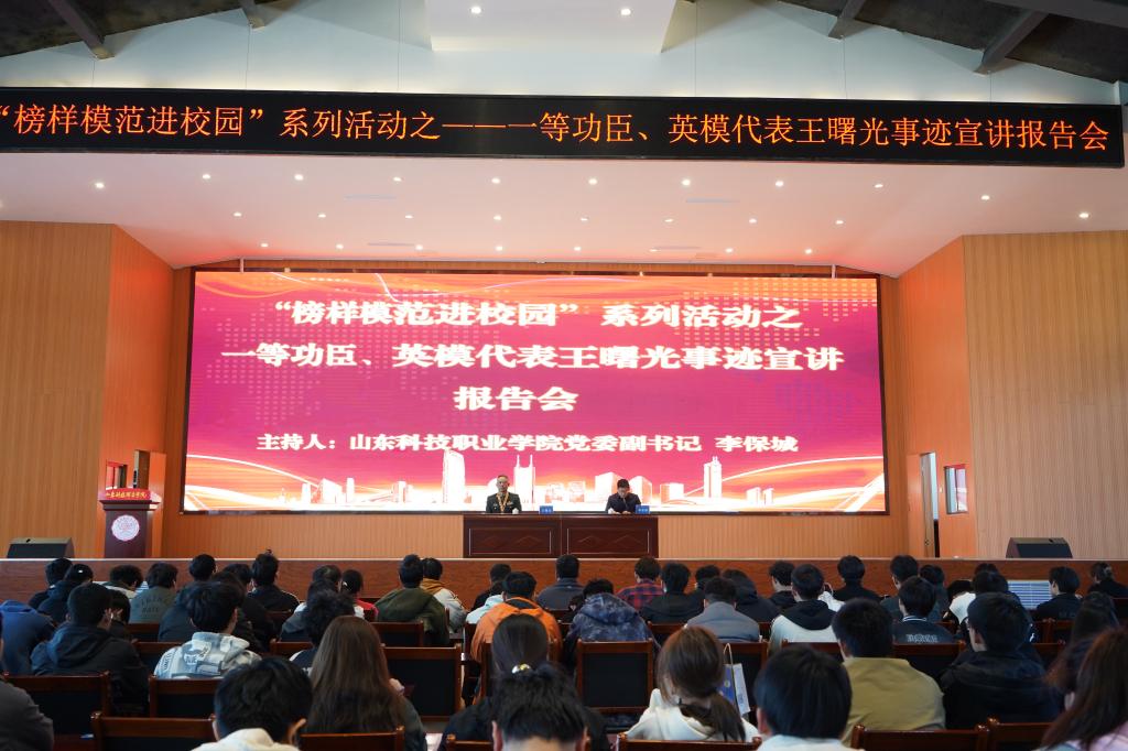 3月20日,一等功臣、英模代表王曙光大校应邀来我校作专题讲座,师生代表400余人齐聚一堂,学习英雄精神,汲取奋进力量。讲座由学校党委副书记李保城主持。