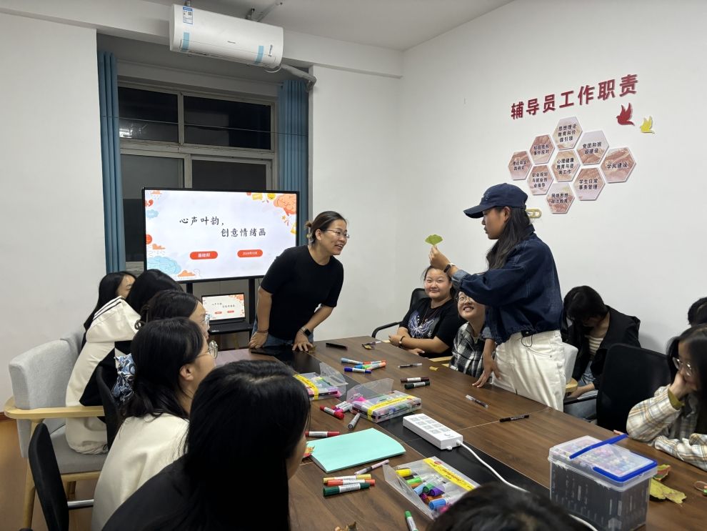 为推动我系心理健康教育工作,引导学生认识自我、接纳自我,培养学生理性平和、积极健康的心理,伟德betvlctor1946源于英国于10月14日在“一站式”社区开展了“心声叶韵,创意情绪画”的心理团辅活动。此次活动由系部学生科老师指导,24名同学报名参加。