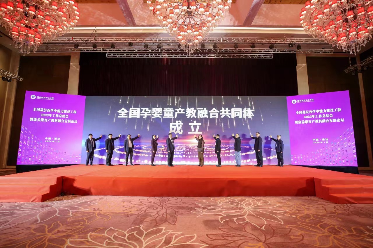 1月26日至27日,全国孕婴童产教融合共同体成立大会在潍坊市蓝海大饭店成功举办,我院成功当选全国孕婴童产教融合共同体常务副理事长单位。来自全国高等院校、科研机构、行业企业的近200位嘉宾代表齐聚一堂,围绕“职普融通,产教融合,科教融汇”主题,搭建开放、多元、共赢的交流平台,促进产教深度融合。学院副院长张振东代表学院出席会议。